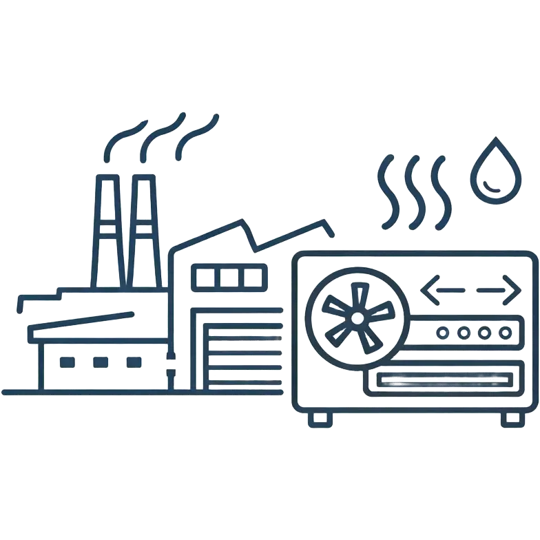 Заводи, виробничі цеха, складські комплекси - промислова вентиляція з видаленням забруднень, контролем вологості та температури.